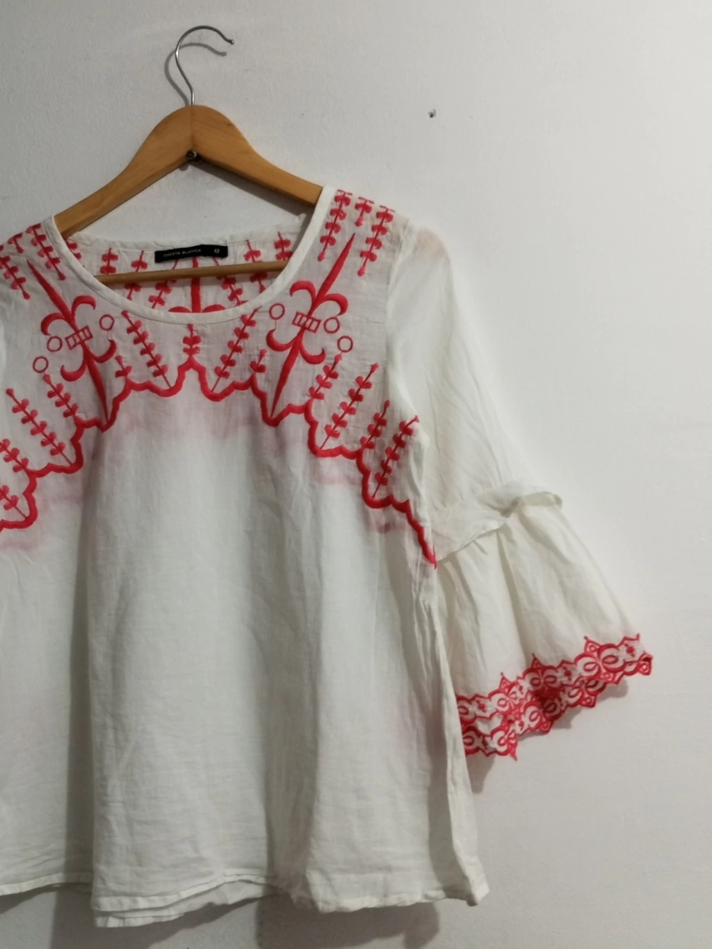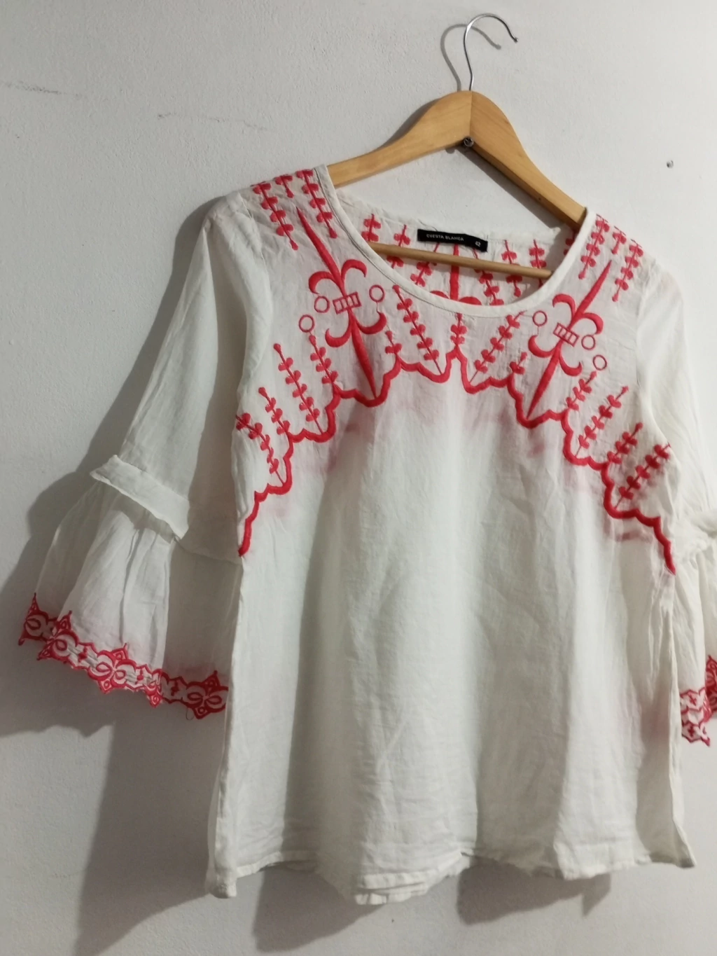 Blusa marca Cuesta Blanca 42 medidas largo 60cm, axila a axila 48cm, espalda 40cm, mangas 40cm