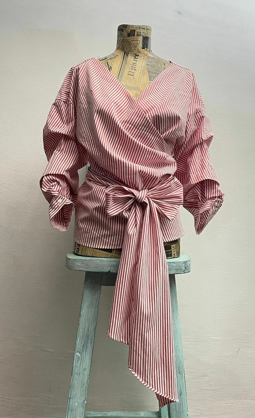 Camisa con lazo para atar en la cintura talle M nueva tela elastizada  , medidas largo 56cm , axila a axila 53.