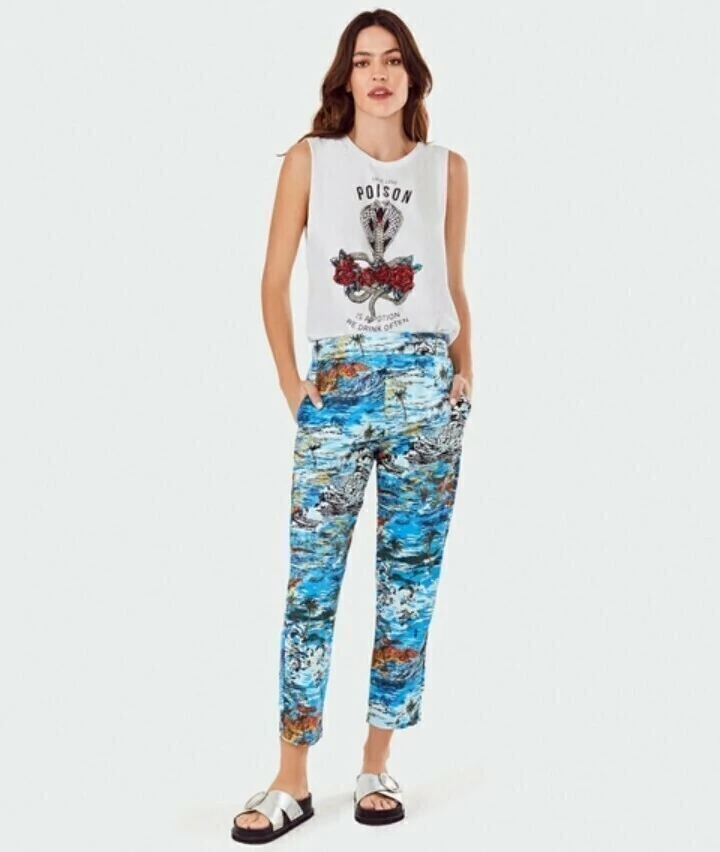 Pantalón marca Kosiuko talle 42 ,, elástico en la cintura en la parte trasera , medidas largo 95cm , cintura 38cm , cadera 55cm , con bolsillos a los costados .