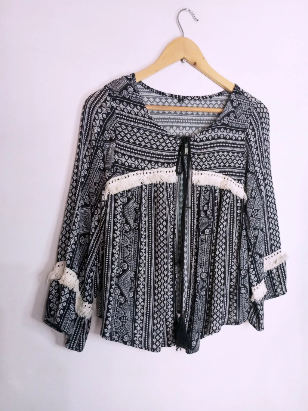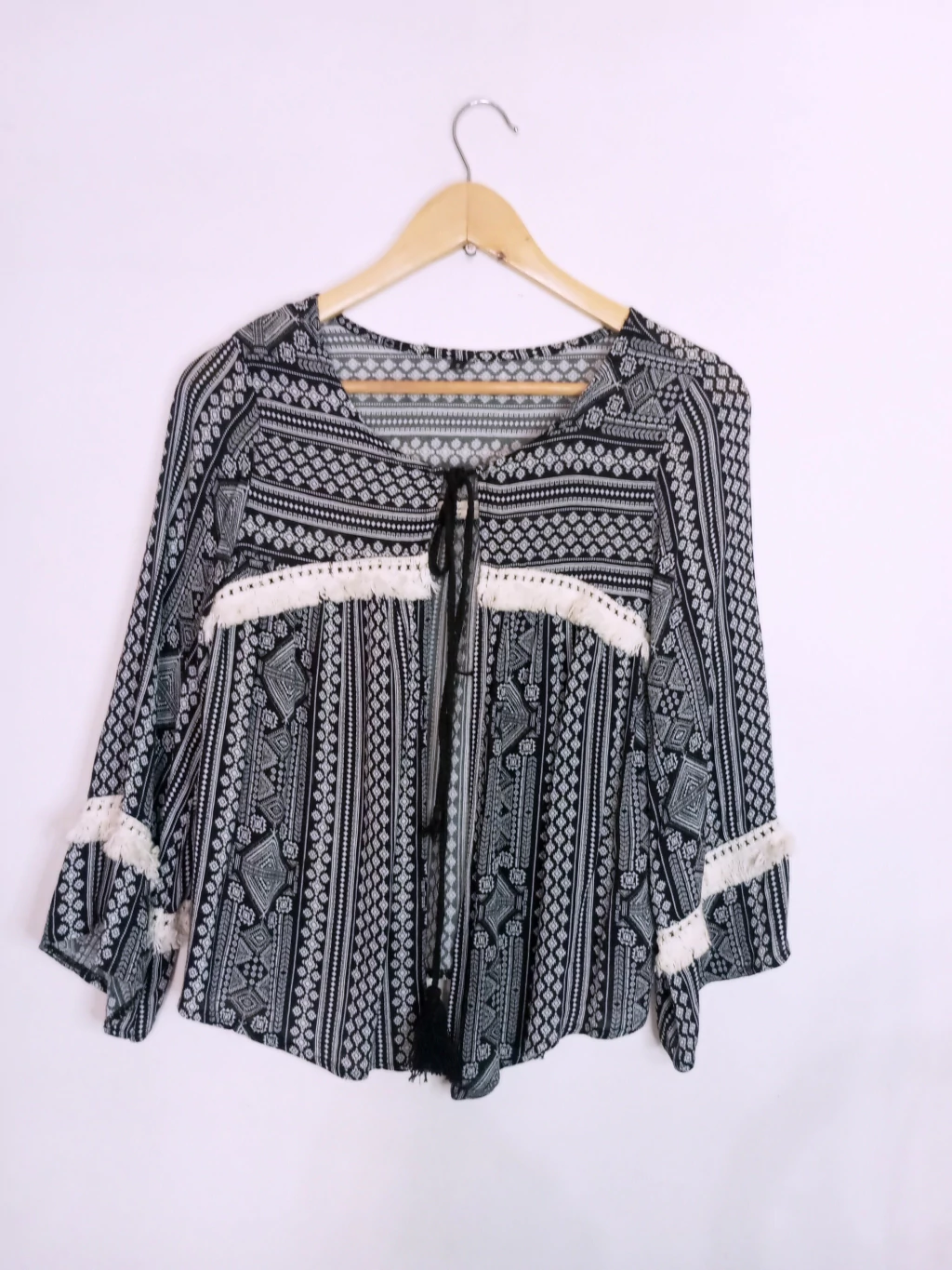 Saco Bambula talle M, medidas largo 56cm, axila a axila 50cm, espalda 40cm, mangas 52cm.