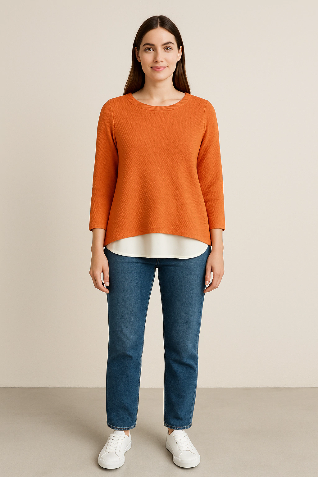 Sweater simula camisa por debajo  talle S/M medidas largo 65cm, axila a axila 50cm.