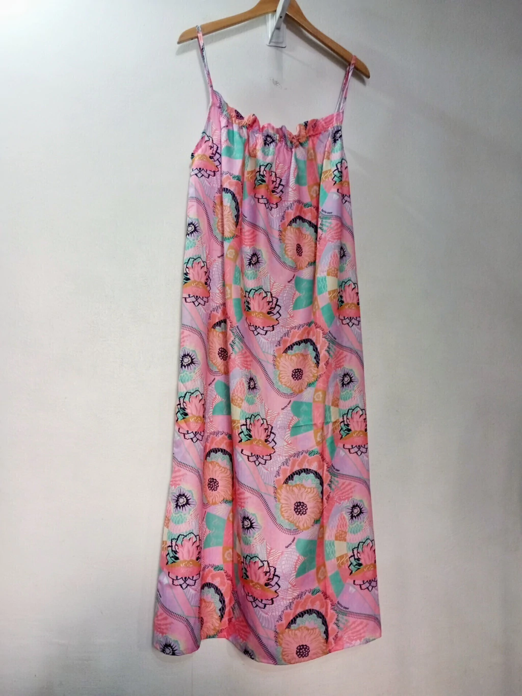 Vestido marca Agustina Saquer nuevo con etiqueta talle M/L  amplio medidas largo 145cm , axila a axila 58cm tela viscosa .